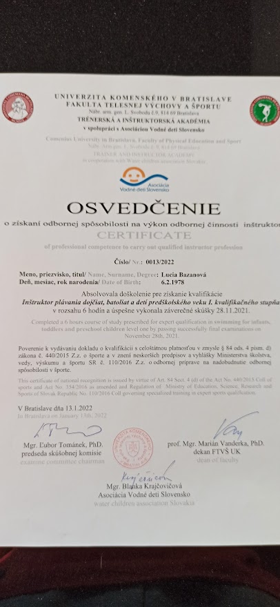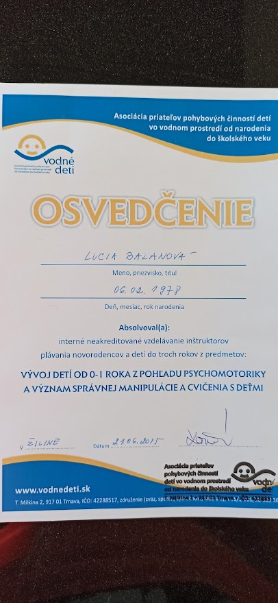 Som inštruktorkou plávania viac ako 14 rokov a je to práca, ktorá ma neustále napĺňa, baví a dokážem sa pri nej naučiť stále nové veci, napriek tomu, že už mám dlhoročné skúsenosti a veľké množstvo školení za sebou. Keďže sa zaoberám aj psychomotorickým vývojom detí, môžem im pomôcť a poradiť v ich vývoji.